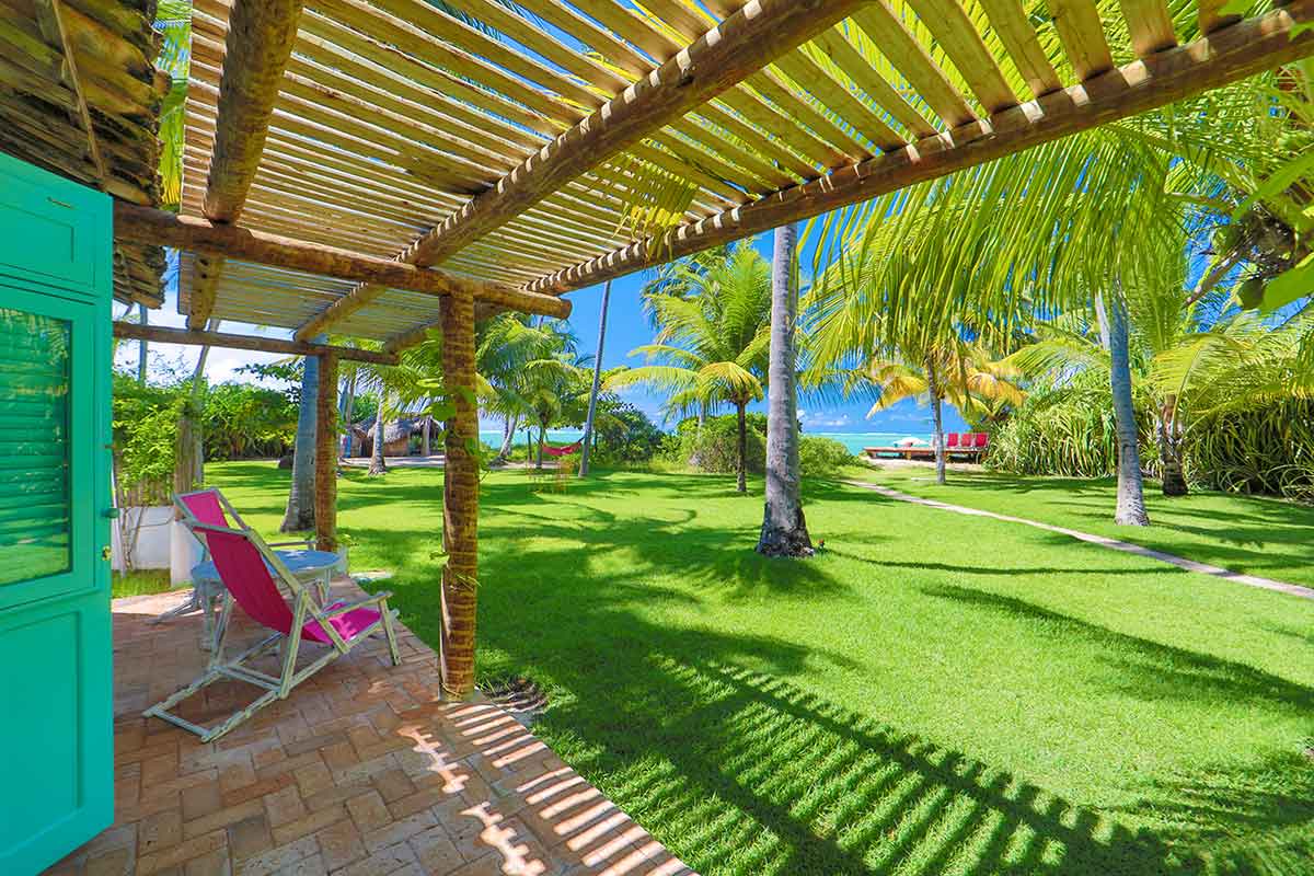 Le soleil, les pieds dans le sable ou sur la pelouse, l'odeur de la mer, le bruissement des cocotiers, le pont étoilé et vous, libre dans ce paradis. Parce que la vie peut être simple et parfaite au même endroit. LUA, ESTRELA, SEREIA, COLIBRI, JASMIM ou FRANCE, cette charmante maison située au cœur de notre jardin, décorée par le designer français qui a idéalisé la Pousada Patacho.